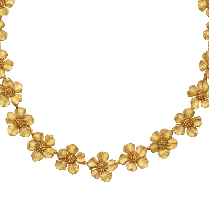 Consisting of flower links in high polish and matte gold finish. 17 inches long.