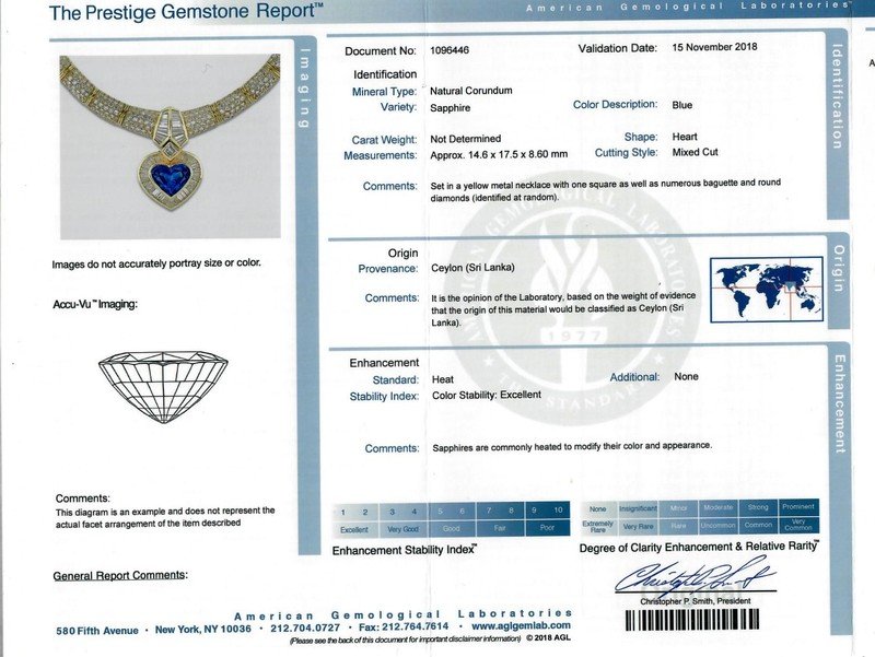 AGL, 2018, Report No. 1096446, Natural Corundum, Sapphire, Ceylon (Sri Lanka), Heated