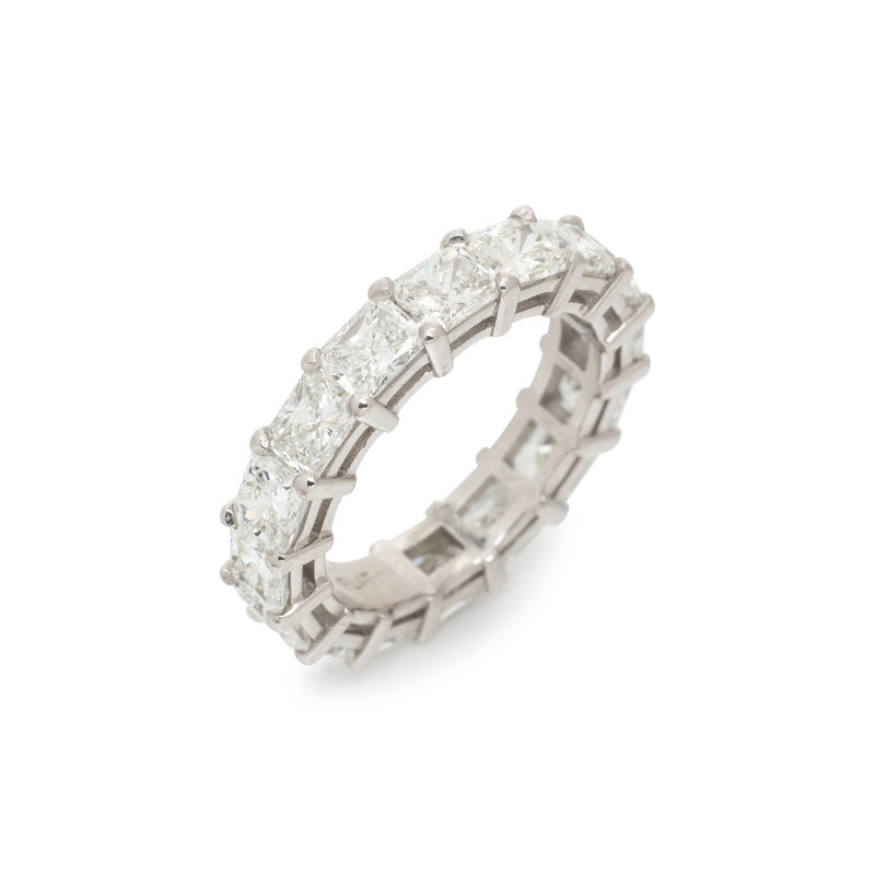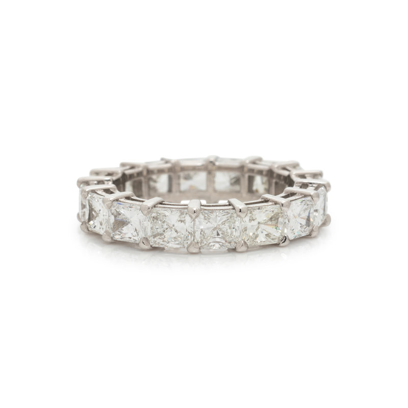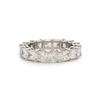 Containing 16 radiant cut diamonds weighing approximately 5.50 carats total. Mounted in platinum. Ring size 6.