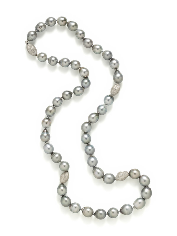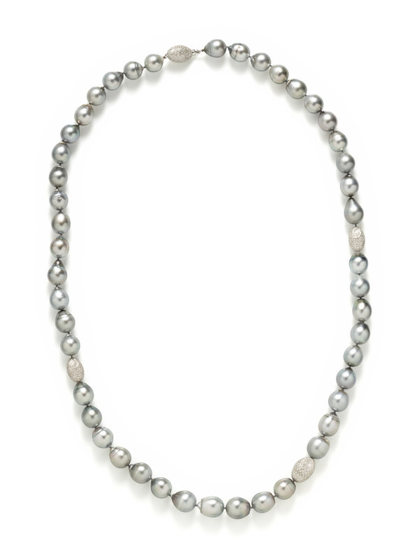 CULTURED BAROQUE TAHITIAN PEARL AND DIAMOND BEAD NECKLACE