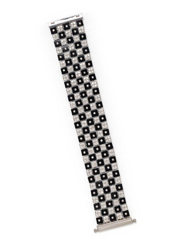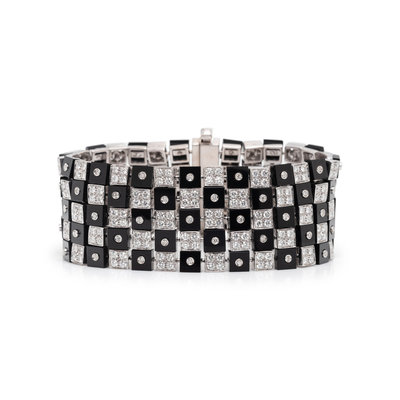 WHITE GOLD, DIAMOND AND ONYX CHECKERBOARD BRACELET