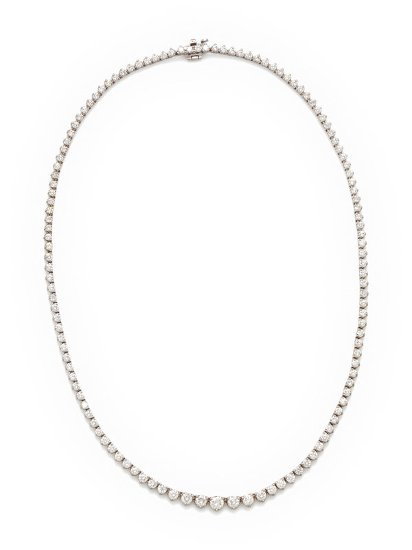 Containing 125 round brilliant cut diamonds weighing approximately 10.00 carats total. Mounted in white gold. 17 inches long.