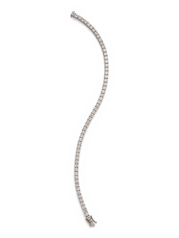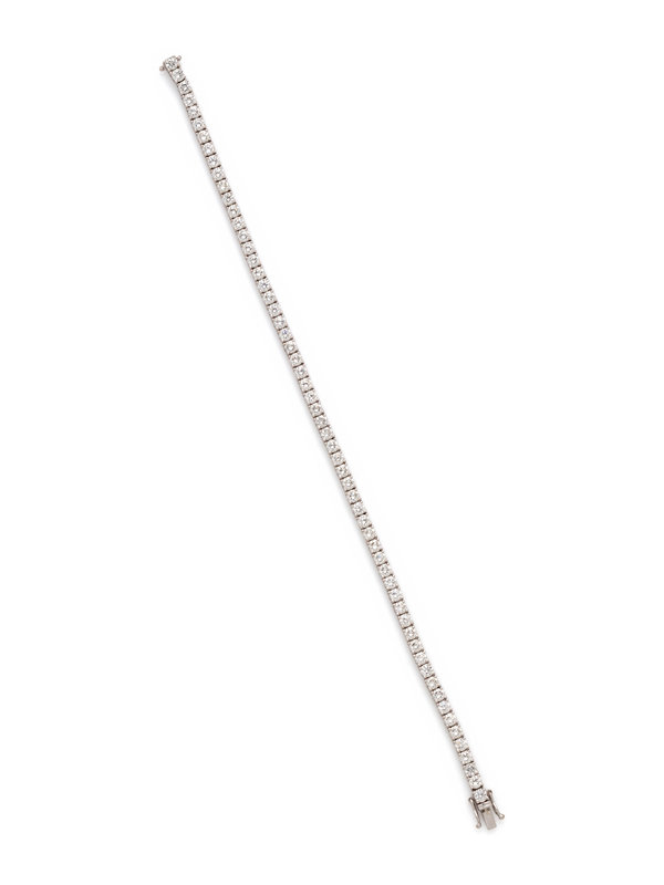 Containing 60 round brilliant cut diamonds weighing approximately 4.80 carats total. Mounted in white gold. 7 inches long.