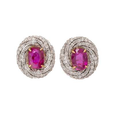 UNHEATED BURMESE RUBY AND DIAMOND EARRINGS