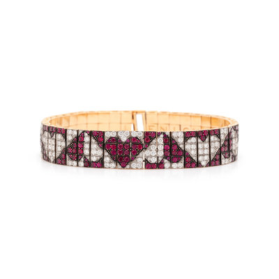 ENIGMA, DIAMOND AND RUBY HEART BRACELET