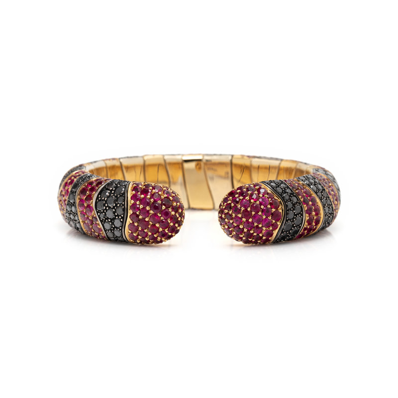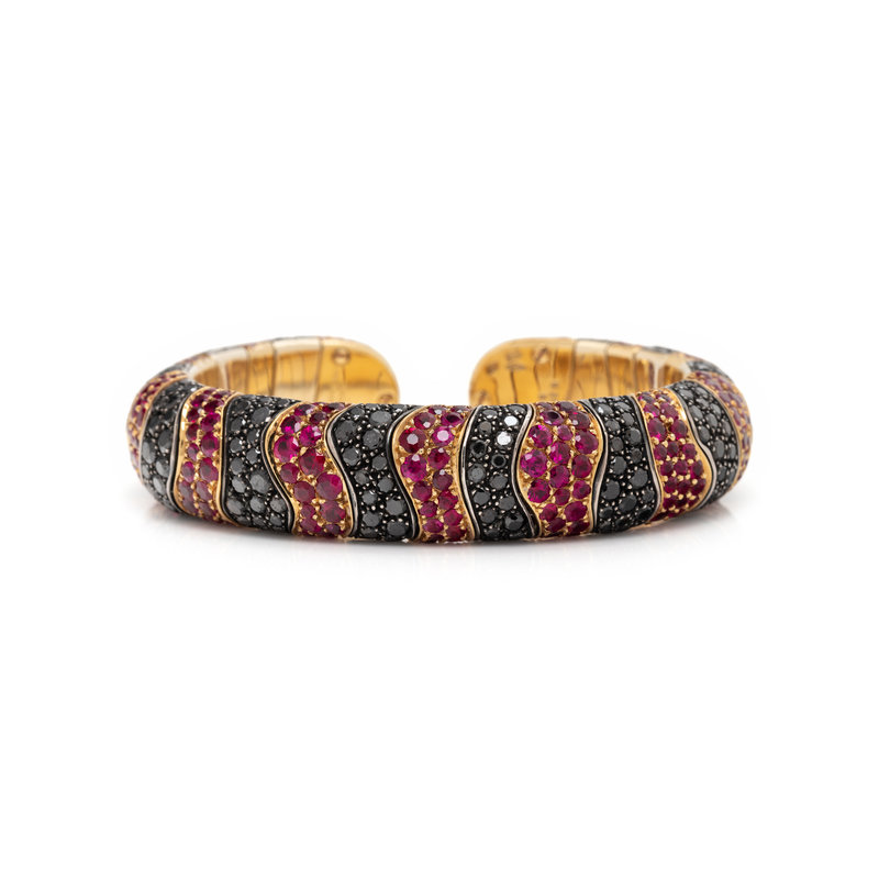 DE GRISOGONO, BLACK DIAMOND AND RUBY CUFF BRACELET