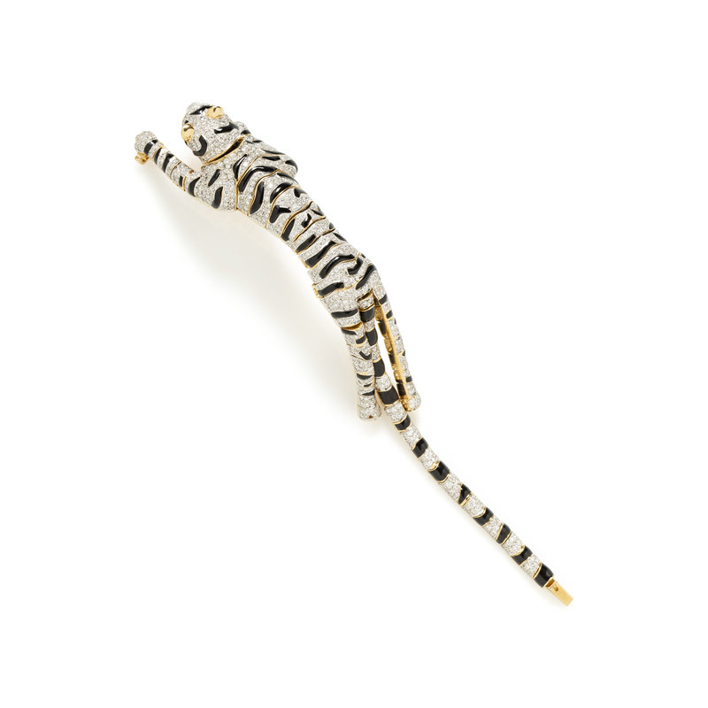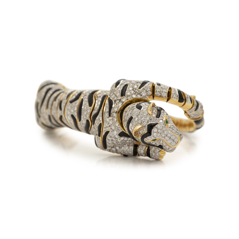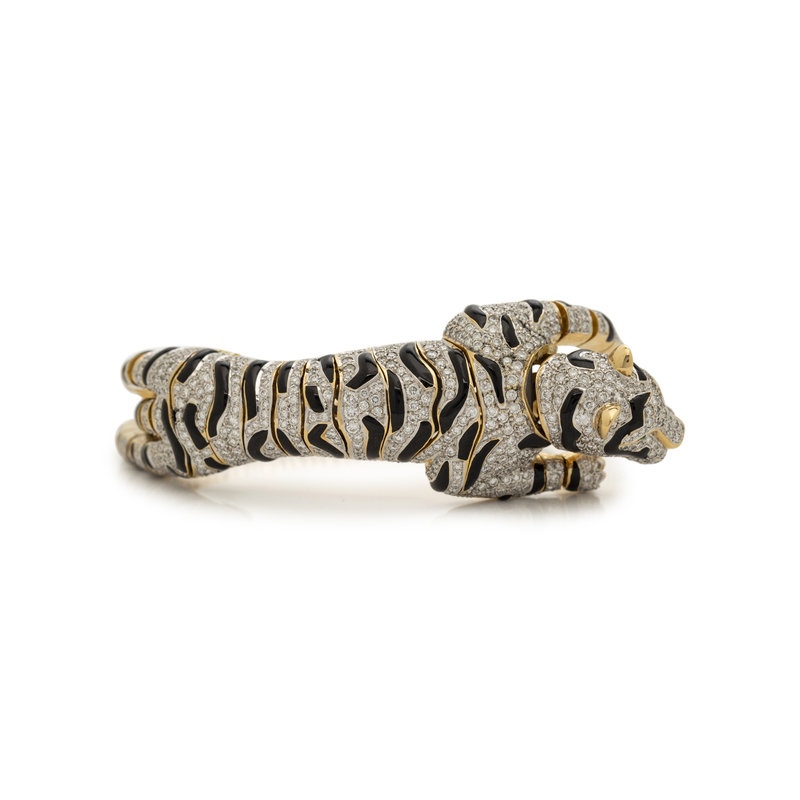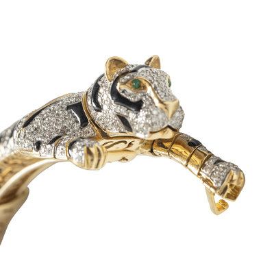 DIAMOND AND ENAMEL TIGER CONVERTIBLE BRACELET/BROOCH