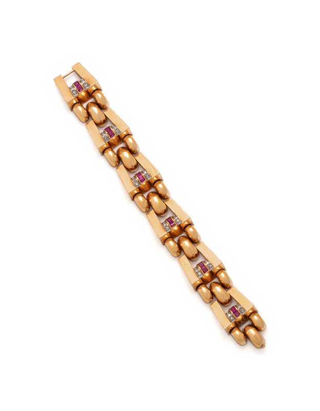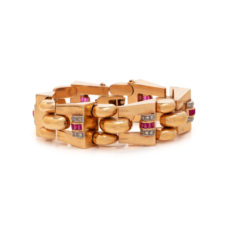 RETRO, ROSE GOLD, PLATINUM, DIAMOND AND SYNTHETIC RUBY BRACELET