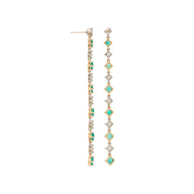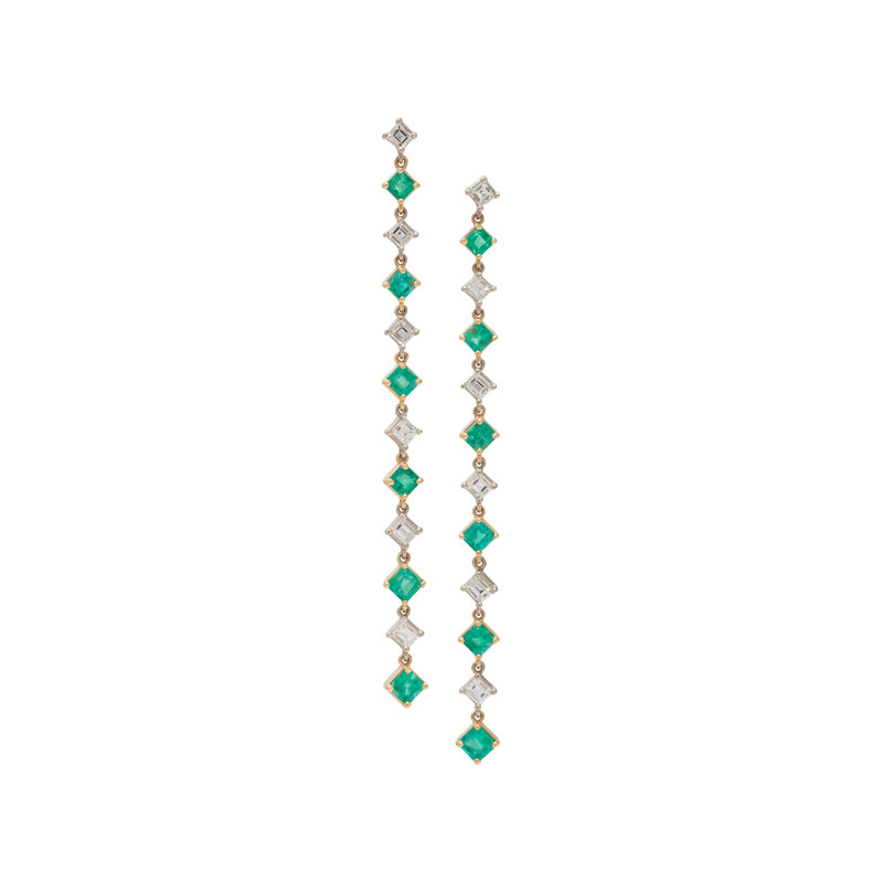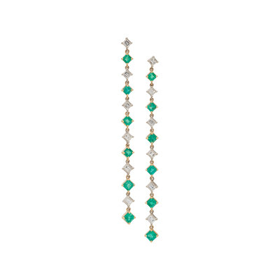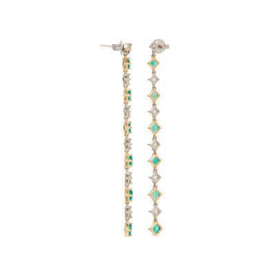 Containing 12 rectangular step cut diamonds weighing approximately 2.00 carats total and 12 emerald cut emeralds. Mounted in bicolor gold. 3 1/4 inches long.