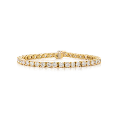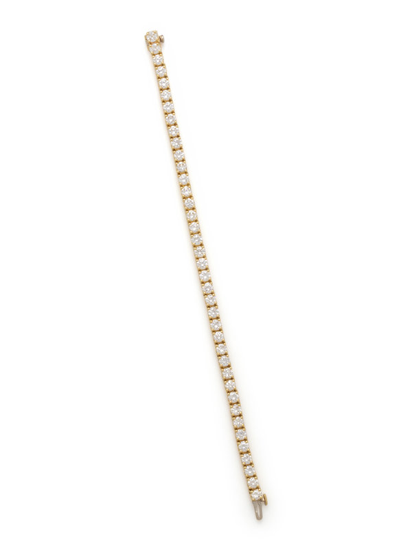 Containing 39 round brilliant cut diamonds weighing approximately 8.35 carats total. Mounted in yellow gold. 6 3/4 inches long.