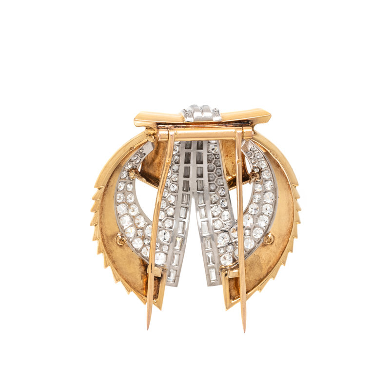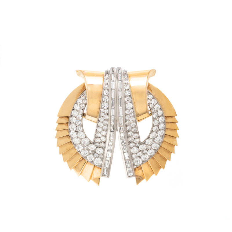 FRENCH, YELLOW GOLD, PLATINUM AND DIAMOND BROOCH