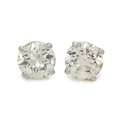 Containing two old European cut diamonds weighing approximately 4.25 carats total. Mounted in white gold.