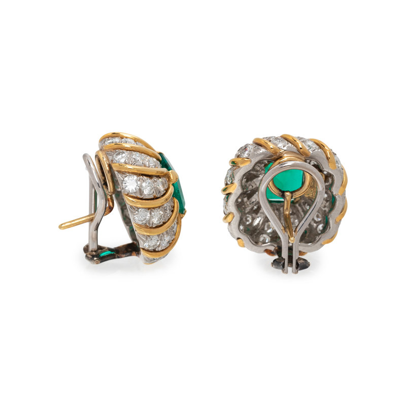 VERDURA, EMERALD AND DIAMOND EARCLIPS