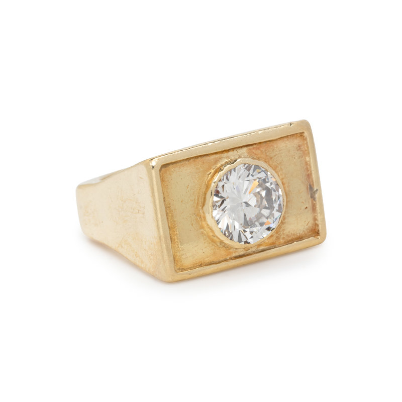 Containing one round brilliant cut diamond weighing 3.13 carats. Ring size 8 1/2.