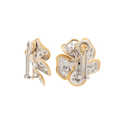 BICOLOR GOLD AND DIAMOND FLOWER EARCLIPS