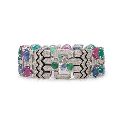 CARVED MULTIGEM, DIAMOND AND ENAMEL BRACELET