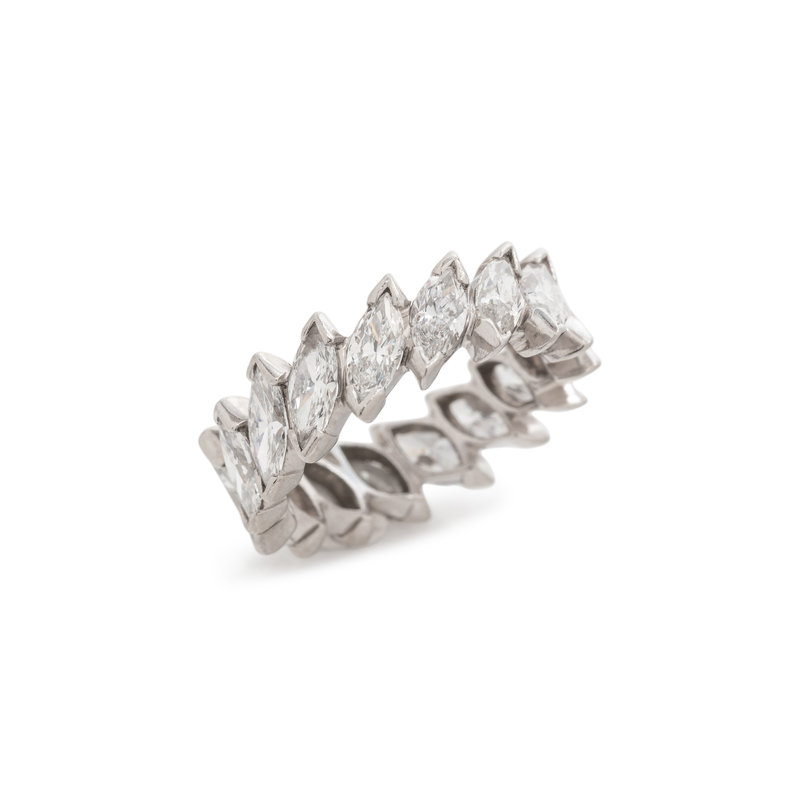 Containing 16 marquise cut diamonds weighing approximately 5.00 carats total. Mounted in platinum. Ring size 7 1/4.