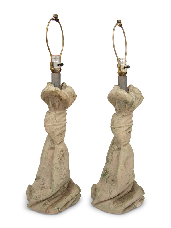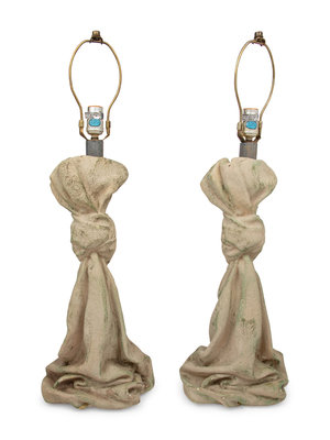 Pair of Trompe l'Oeil Draped Table Lamps, c. 1980