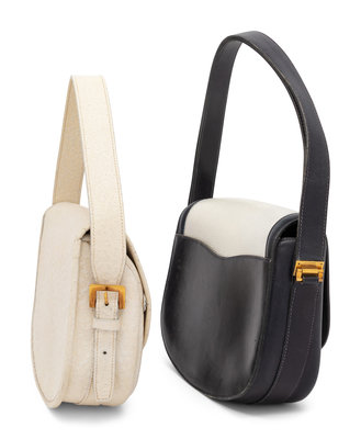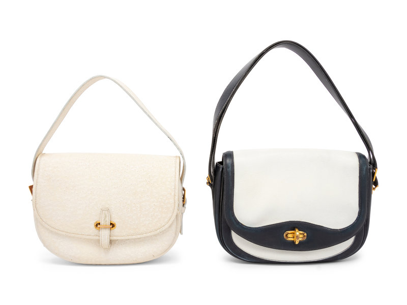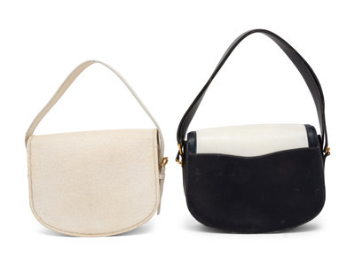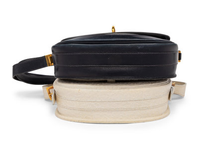 Medium flap shoulder bag in bicolor white and blue leather with blue leather lining.
