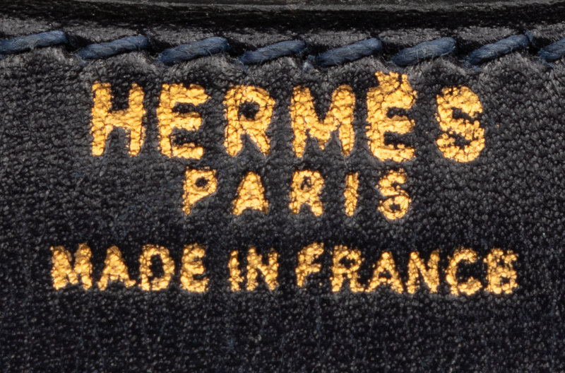 Interior details: Blue leather lining with three interior sidewall pockets.