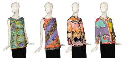 The “Prince of Prints” Emilio Pucci (1914-1992) began his career in fashion designing skiwear. An avid skier himself, Pucci began designing ski suits in 1947 and lending them to female friends. On a trip to the Swiss Alps, Pucci and his friends caught the attention of Harper’s Bazaar photographer Toni Frissell. The pictures were published in the December 1948 issue, and shortly after, Diana Vreeland, then an editor at the magazine, encouraged him to design a women's skiwear collection. He seized the opportunity, debuting his first collection in 1950, and quickly became a pioneer in Italian fashion. In 1951, he was selected to present his designs in the first-ever Italian fashion show in Florence. Pucci designed for the modern woman, whose jet-set, active lifestyle necessitated ease-of-movement without compromising style. Though this concept is now taken for granted, it was groundbreaking at the time. In 1954, Pucci won the Neiman Marcus Fashion Award for his innovative use of stretch fabrics, launching the brand’s incredible popularity in the U.S. Pucci is known as the “Prince of Prints” for a reason––the iconic abstract, psychedelic patterns in brilliant colorways were a fixture of his work from the beginning. He drew inspiration for his prints from Sicilian mosaics, the Palio di Siena horse race, the artworks of Botticelli and Brunelleschi, Balinese batiks, and cultural dress throughout Africa and South America, among others. His influence was further cemented by Marilyn Monroe, who loved his designs and was frequently photographed in them. So did Jackie Kennedy–– Pucci was a fixture of her iconic vacation style. Pucci was also very accomplished in the public sphere. He was a member of the Italian Parliament from 1963 to 1972. In 1971, he designed the logo for NASA’s Apollo 15 mission. In 1991, Pucci won the prestigious Council of Fashion Designers of America award, bookending his success in the fashion industry 40 years after his debut.