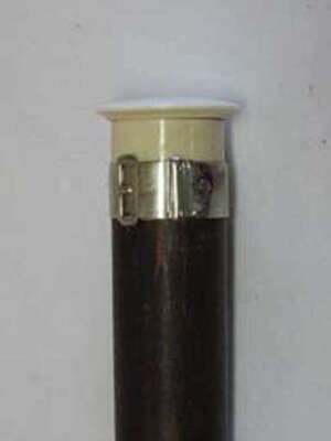 With silver belt buckle cuff inscribed with the letters B.L.C., the top opening to reveal a cavity for storing nutmeg, the cap acting as the grinder.
