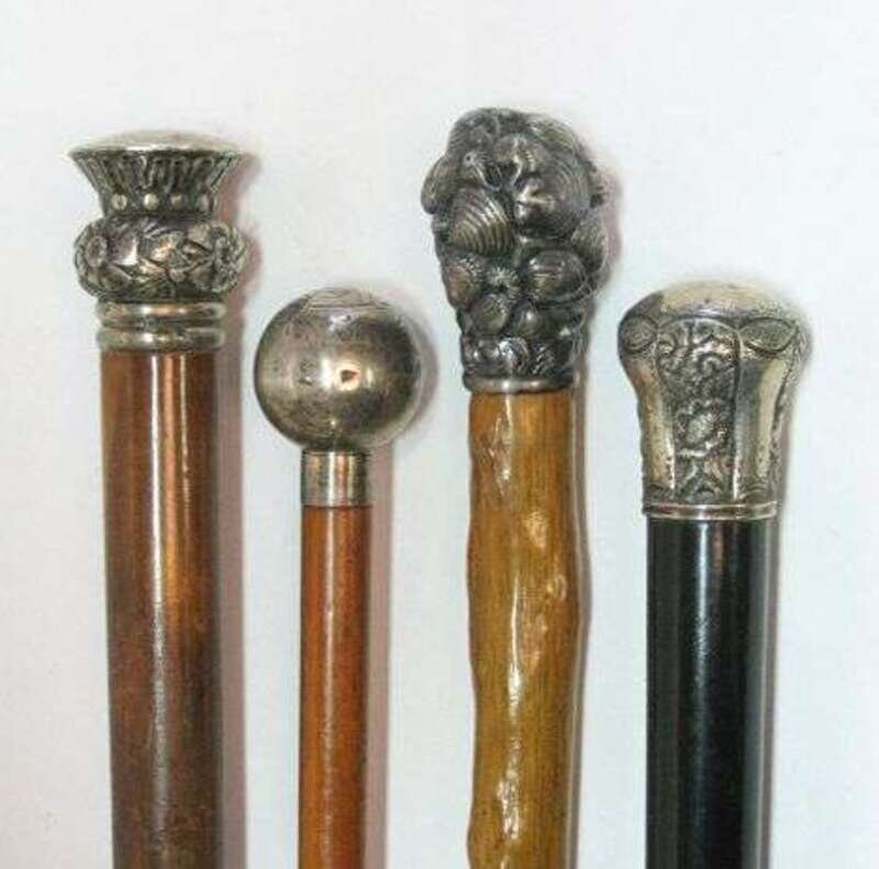 Four Sterling handled walking canes