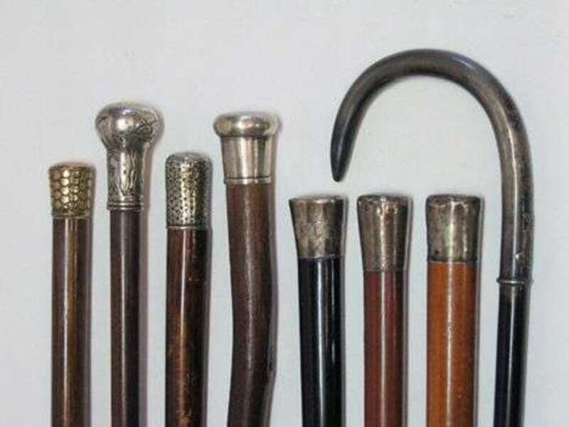 Together with 7 assorted wood and silver 'knob' handle walking sticks (8).