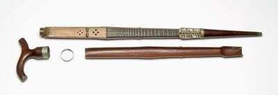 the 'tau'- shaped handle unscrews to reveal an interior fitted as a mandolin. 36 in.