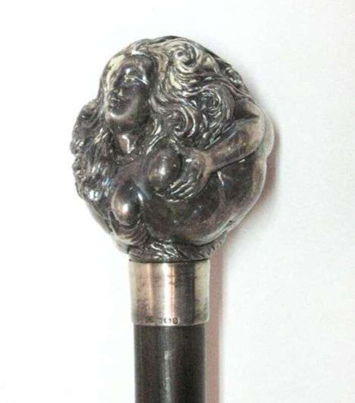 Sterling erotic handled cane Wales, late 19th c.
