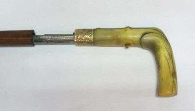 With bone handle and tapered satinwood shaft, the inner barrel inscribed 'H J. Harvey, Depose' 35 in.