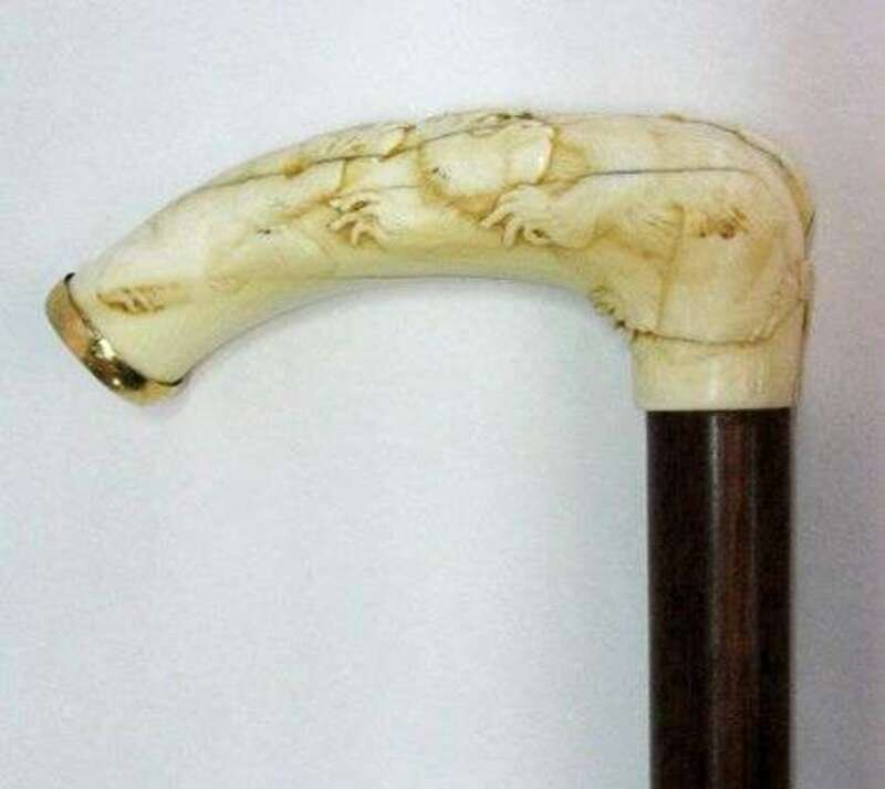 Japanese carved ivory handled cane late 19th c.