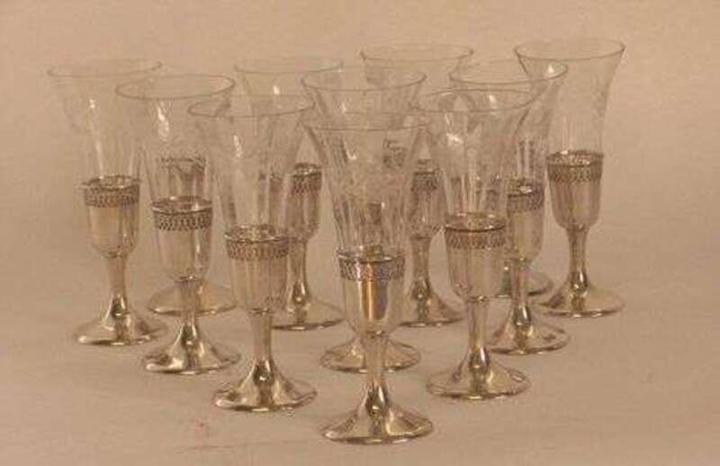 Set of 10 sterling mounted sorbet glasses 20th c.