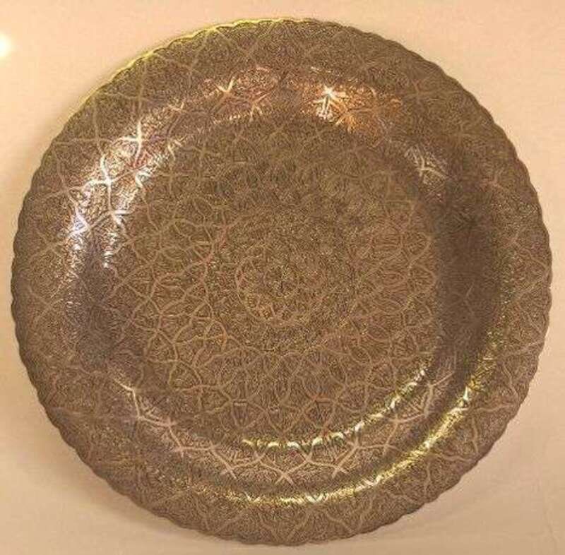 Engraved with stylized plant forms. Diam: 11 3/4 in. 20 oz.