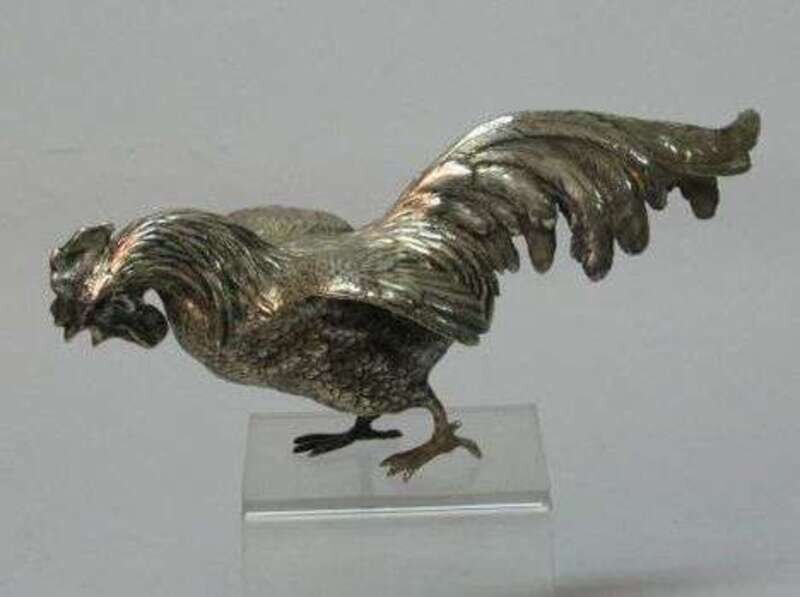 With ruby glass eyes, stamped 800. H: 4 in, 11 oz.
