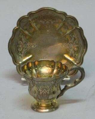 Russian silver gilt cup & saucer 19th c.