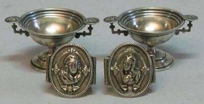 Pair of coin silver salt cellars & a pair of napkin rings Late 19th / early 20th c.