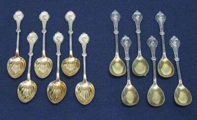 Two sets of six 'Medallion' coin silver spoons Wood & Hughes, late 19th c.