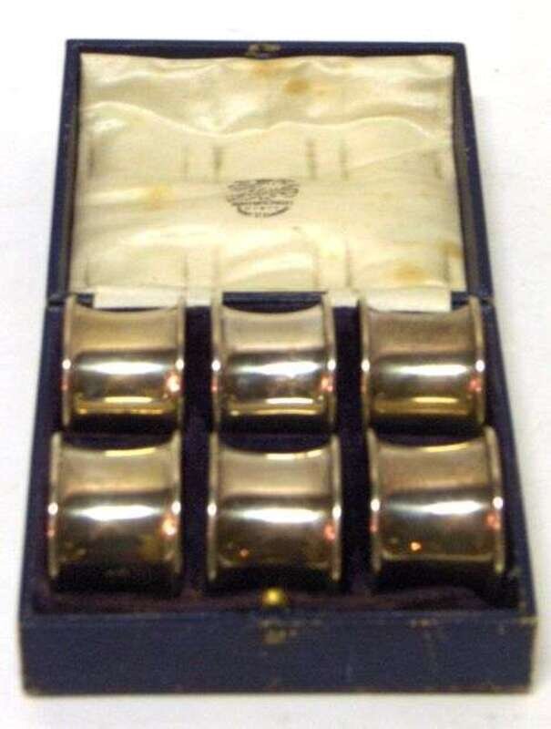 Cased set of six silver napkin rings Robert Pringle, Birmingham, 1921