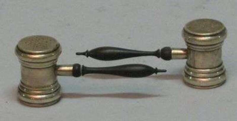 Pair of sterling silver gavel-form salts Ca. 1900