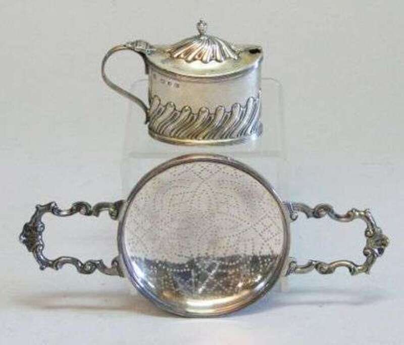 Makers mark rubbed, with twin rococo scroll cast handles; together with a Victorian silver mustard pot, Birmingham, 1892. 7 oz. (2).