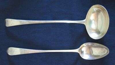 Monogrammed 'L'; together with a George III silver soup ladle, George Smith & William Fearn, London 1787. 8 oz. (2).