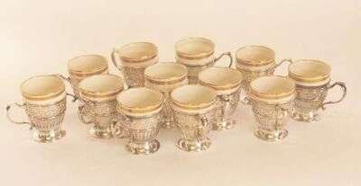 Set of 12 Lenox porcelain & Tiffany sterling mounted cups and saucers 20th c.
