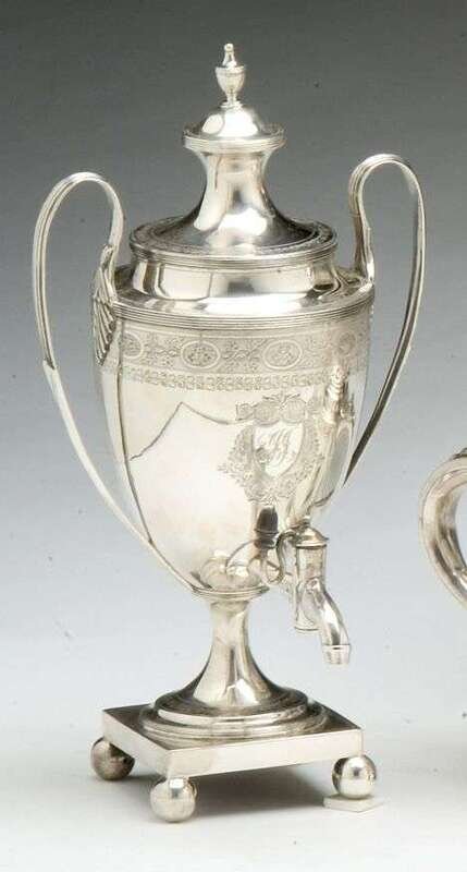 George III silver hot water urn John Rowe, London 1799