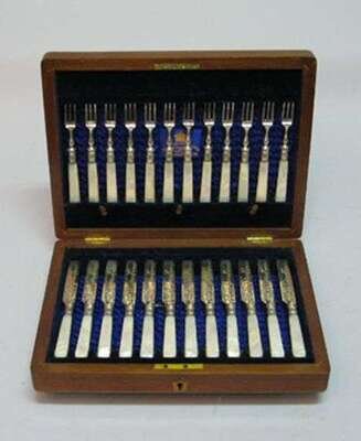 Edwardian silver and mother-of-pearl cased fruit service Atkin Brothers, Sheffield 1901