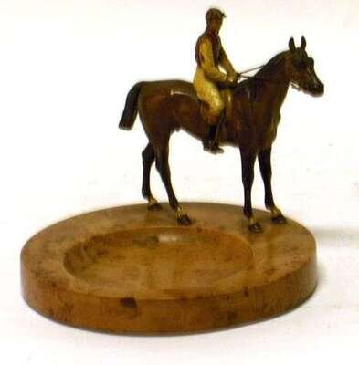 The circular mounted with a horse and jockey, stamped Austria. H: 5 1/2 in.