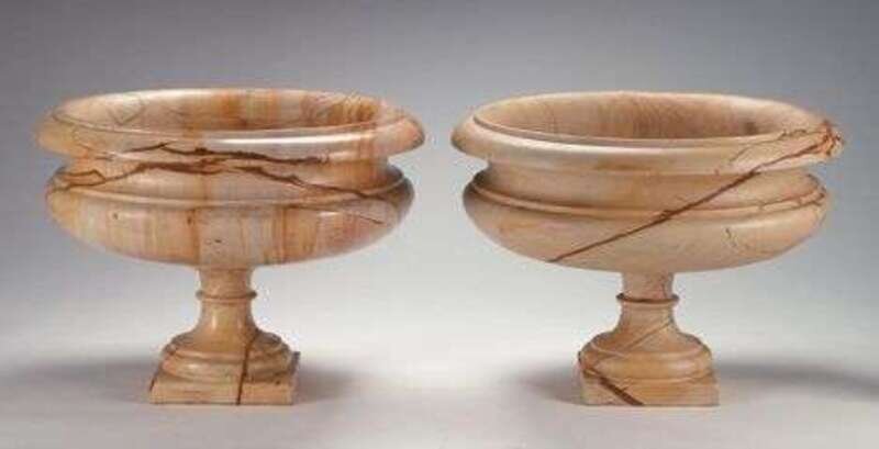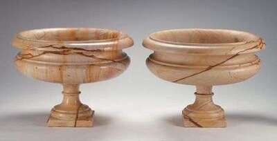 PAIR OF SIENNA MARBLE URNS