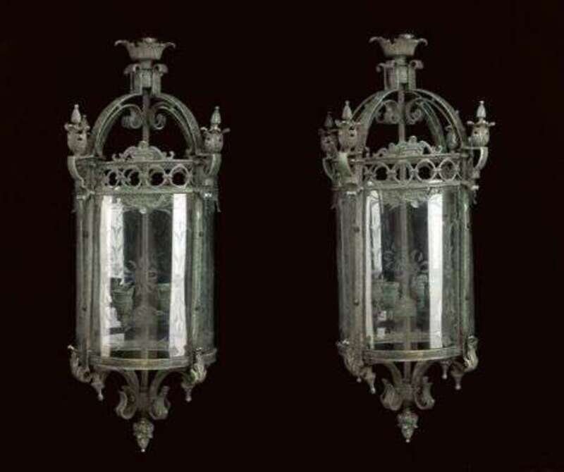 PAIR OF LACQUER BRONZE WALL LANTERNS