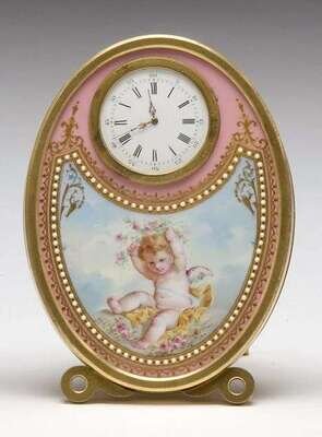 Fine French porcelain & gilt bronze desk clock late 19th c.