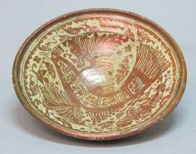 Decorated with a stylized bird. Diam 15 1/4 in.